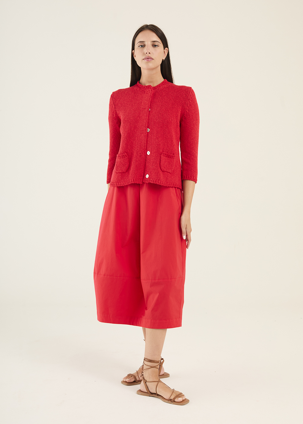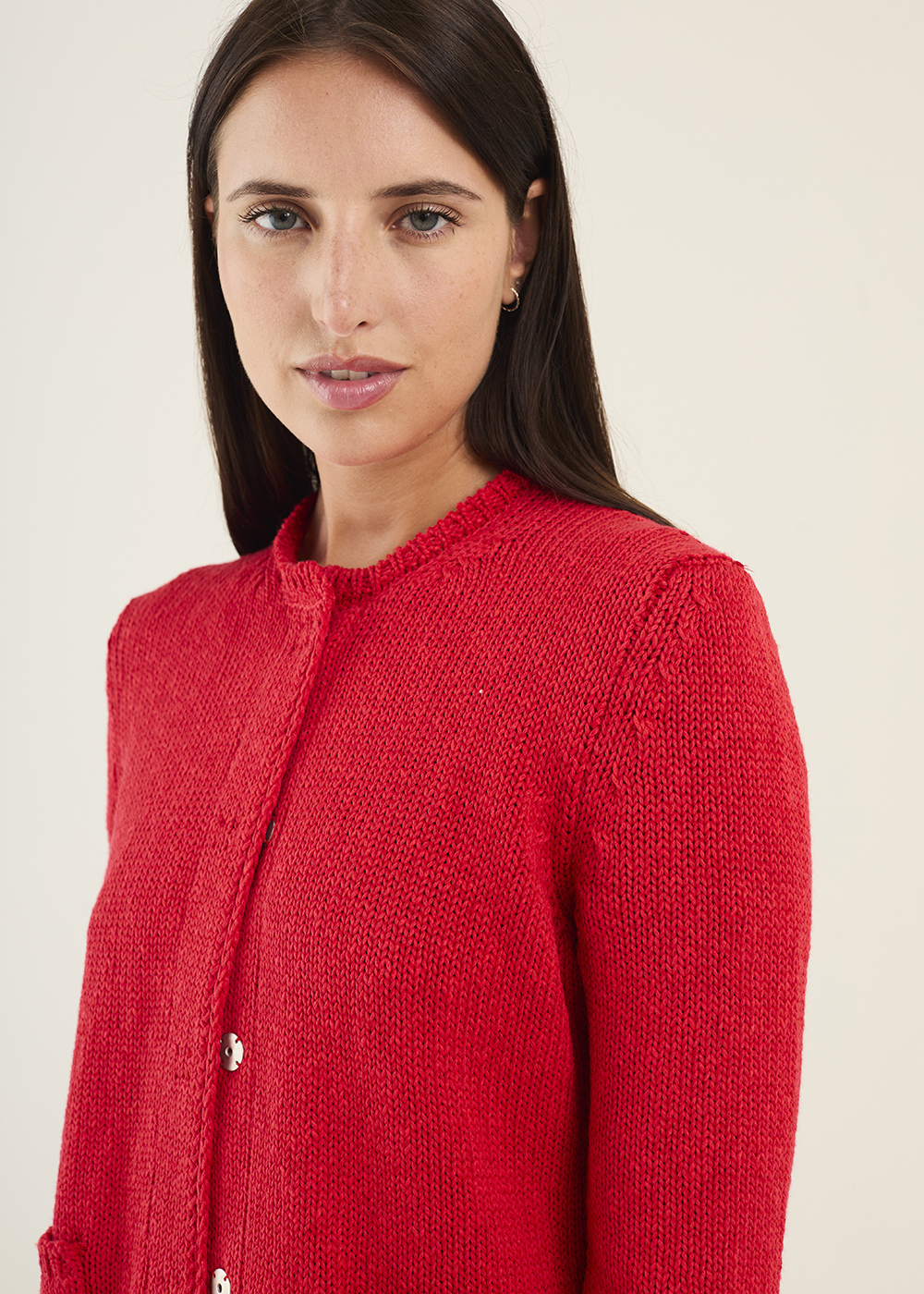 Chanel in cotone-lino vanisè con taschini, dalla vestibilità regolare che segue la silhouette con naturale equilibrio, rendendo la giacca estremamente versatile e adatta a diverse occasioni. Il girocollo pulito e le maniche a tre quarti contribuiscono a creare una linea elegante e contemporanea, perfetta per un look curato, ma disinvolto. I dettagli definiscono l’identità del capo: le taschine frontali richiamano l’estetica iconica della chanel, aggiungendo un tocco chic e funzionale, mentre la chiusura con automatici mantiene il design essenziale e armonioso. A impreziosire ulteriormente la giacca è il bordino lungo i contorni, che ricorda un delicato ricamo: una finitura sofisticata che incornicia il capo con discrezione, esaltandone le linee e donando un carattere distintivo. Un capo pensato per chi ama un’eleganza autentica, fatta di dettagli curati e materiali di qualità. Disegnata e prodotta interamente in Italia, rappresenta l’eccellenza della maglieria Made in Italy. La modella indossa la taglia 42.