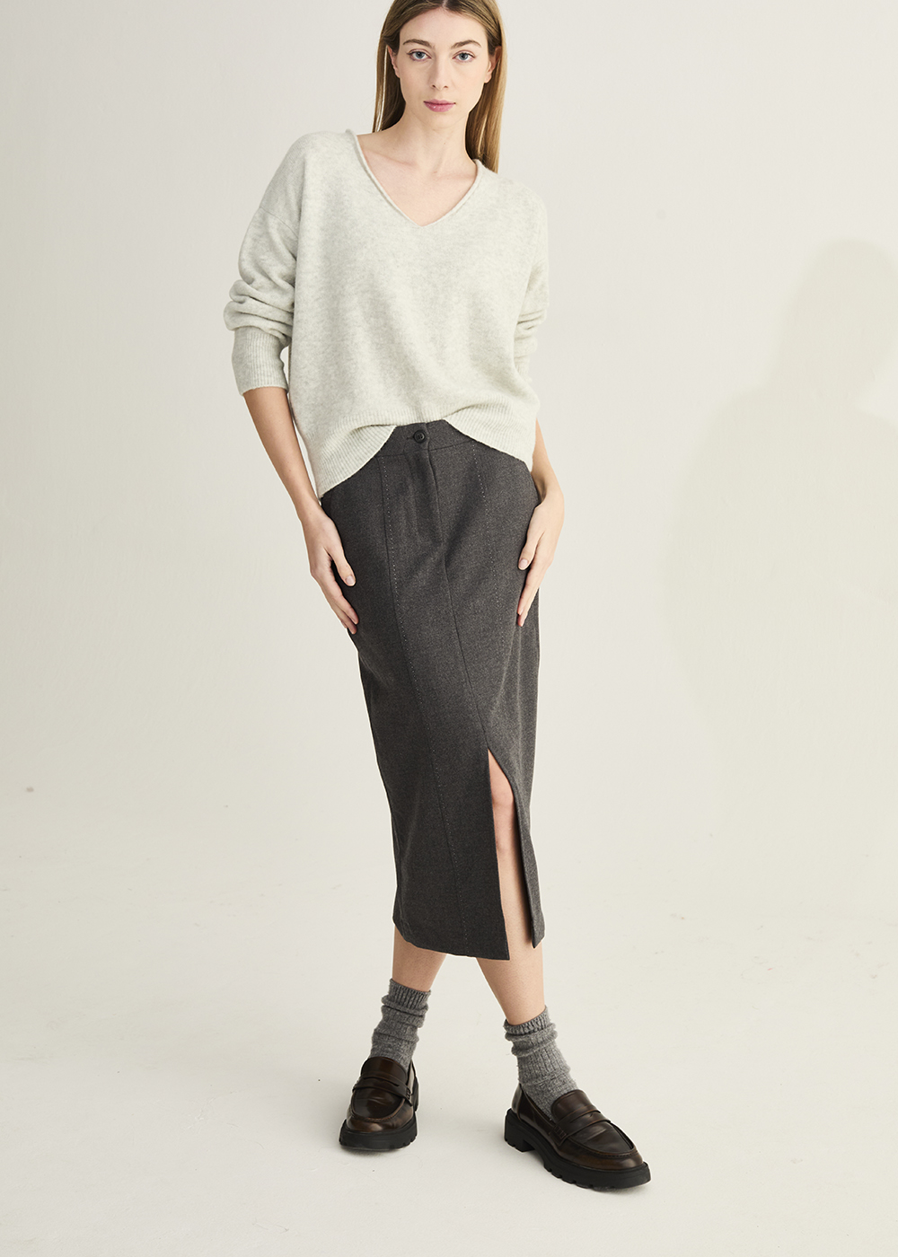 Maglia scollo V in lana e cashmere stretch extra-soft